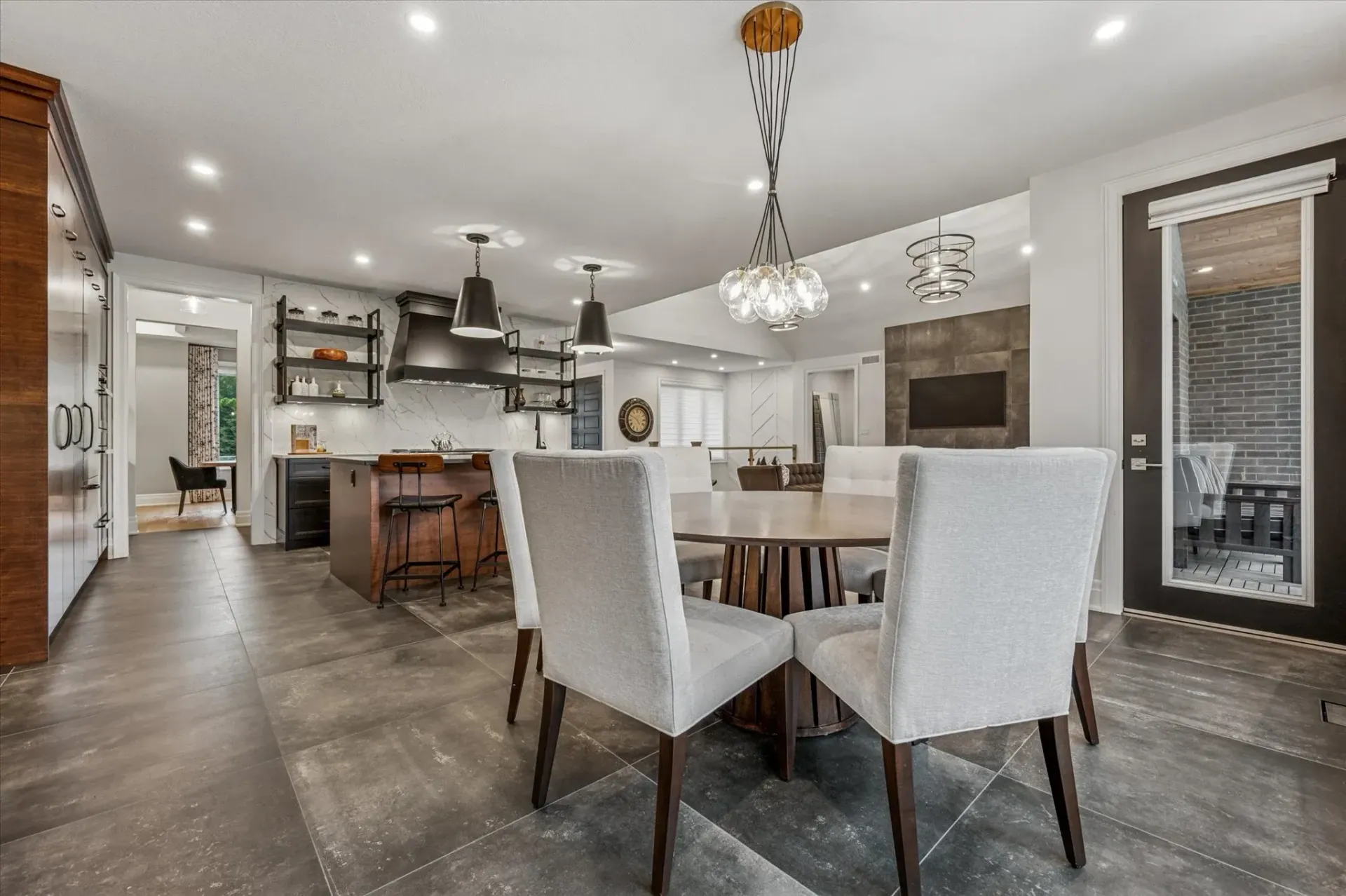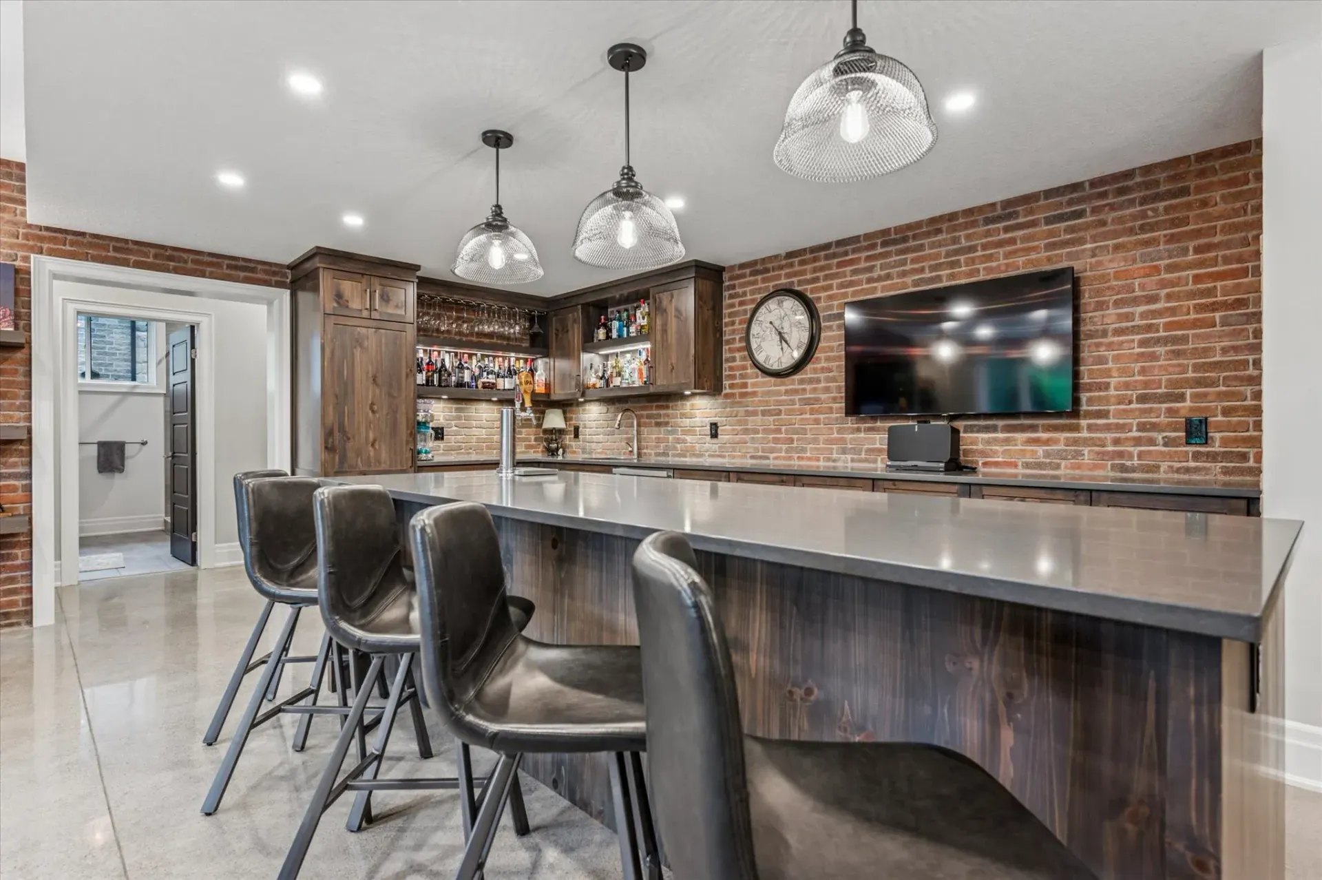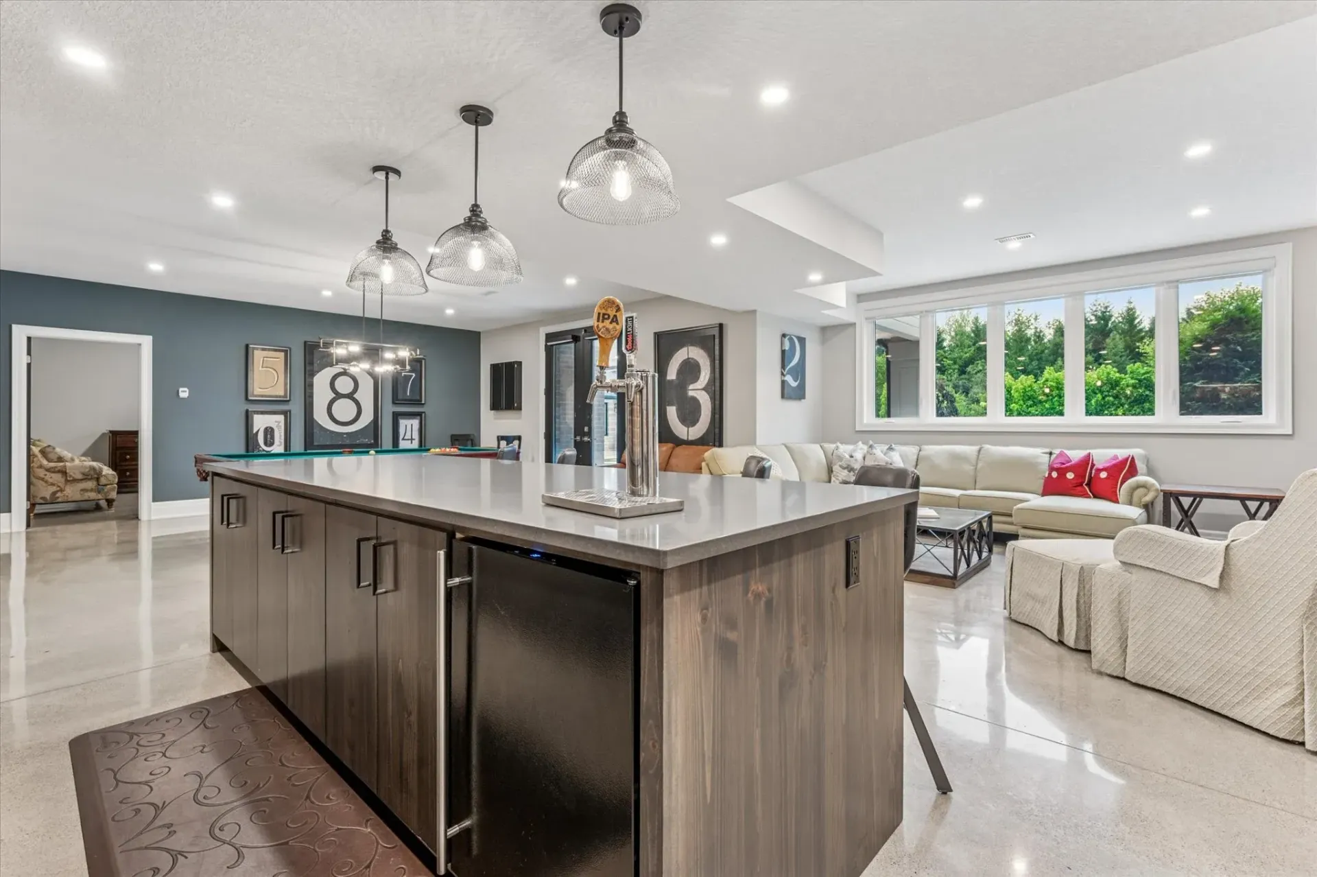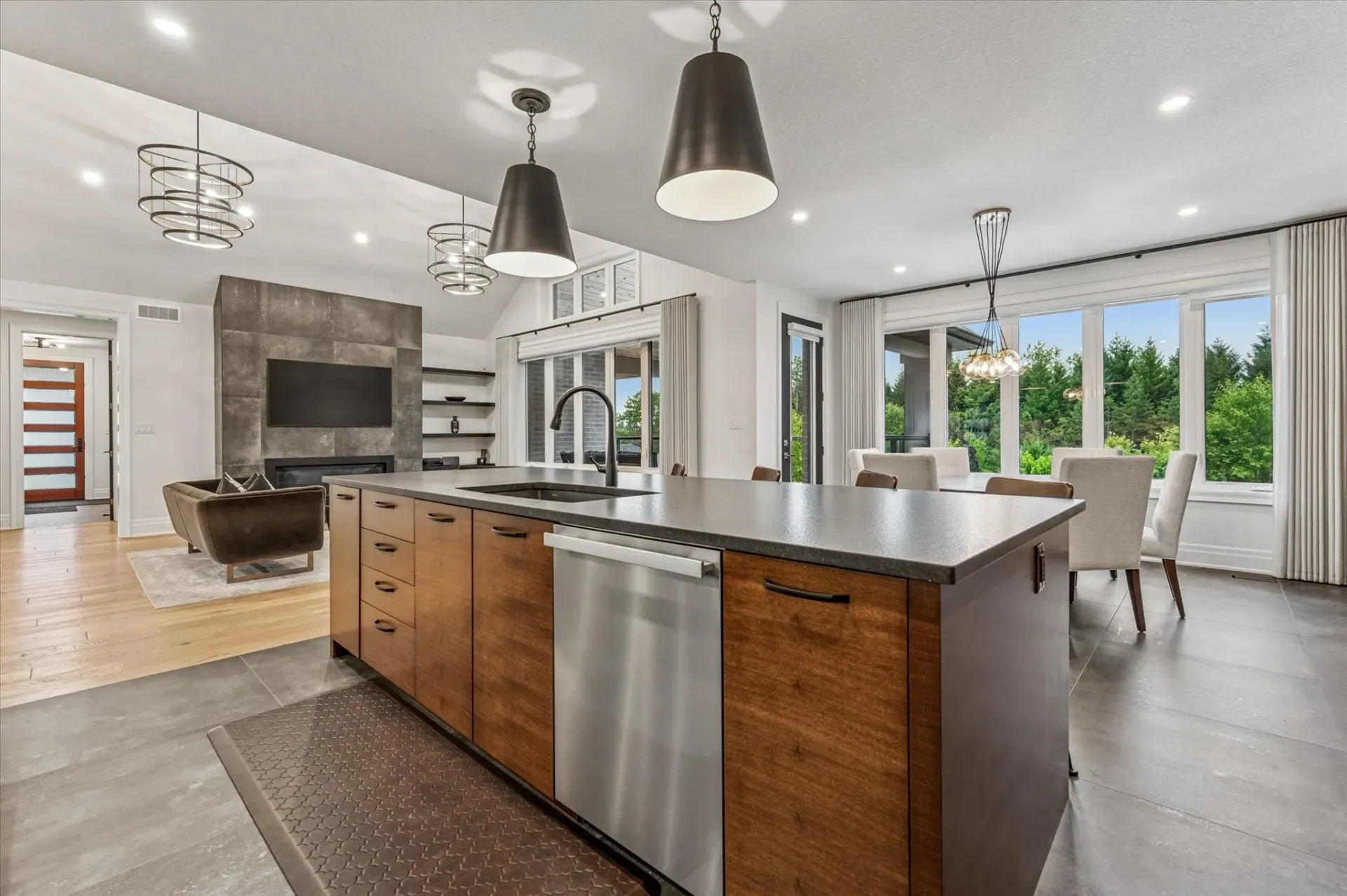 Vaulted ceilings, custom millwork, and heated polished concrete floors showcase the home's refined finishes and attention to detail.