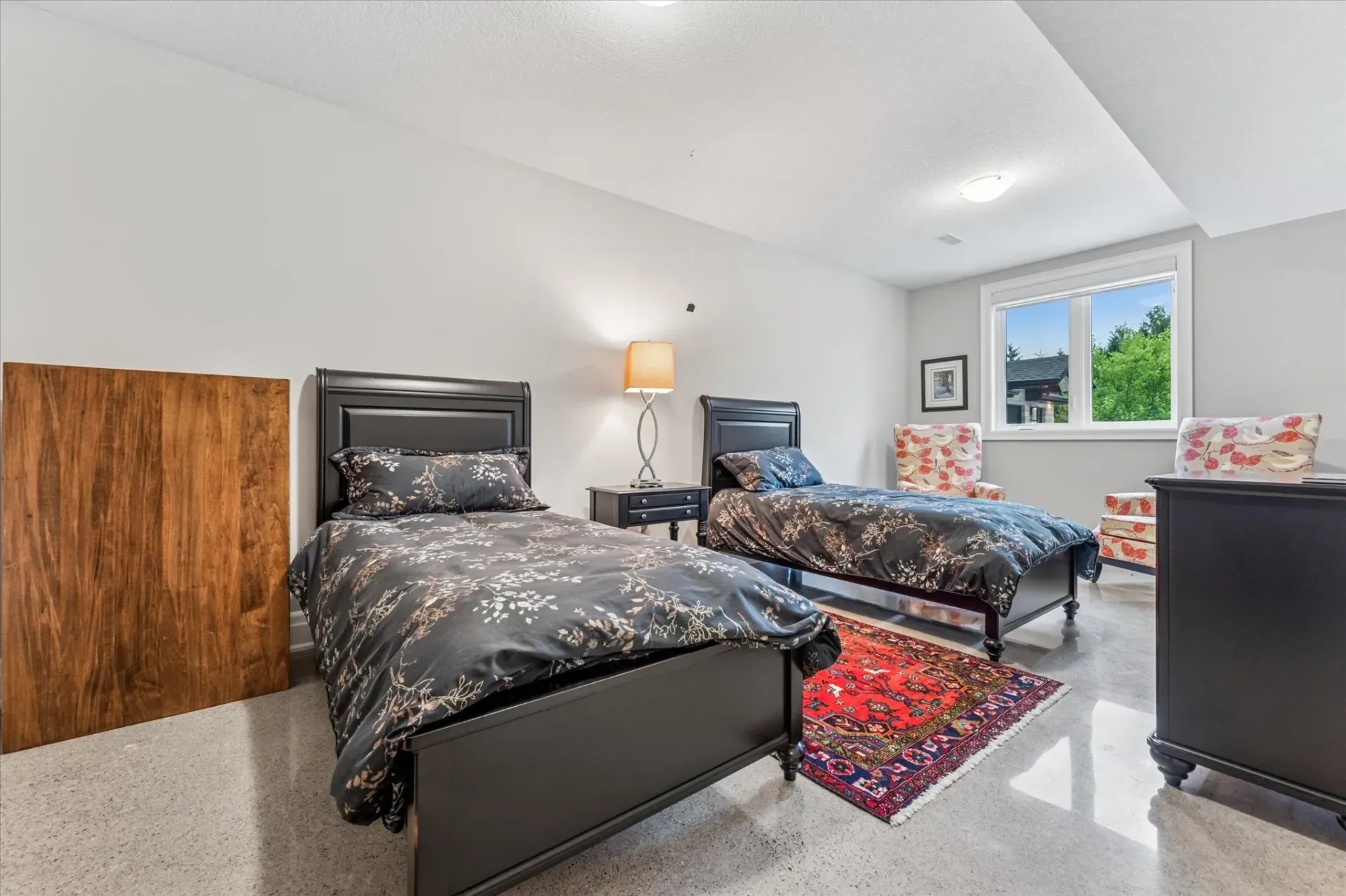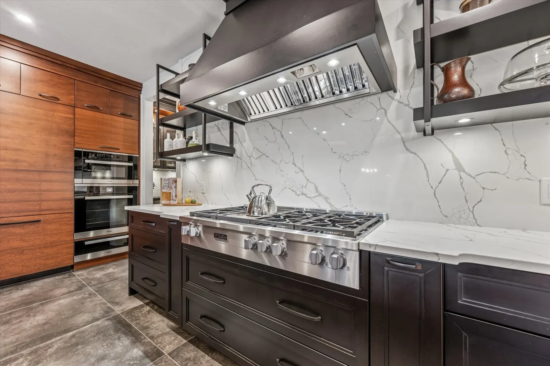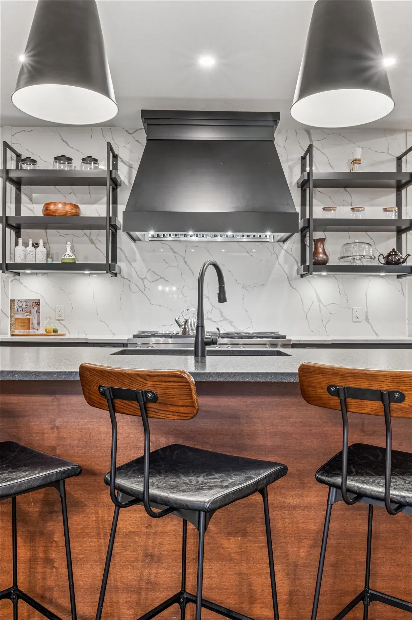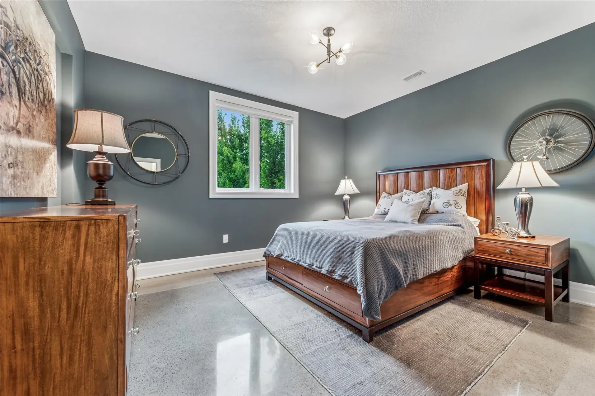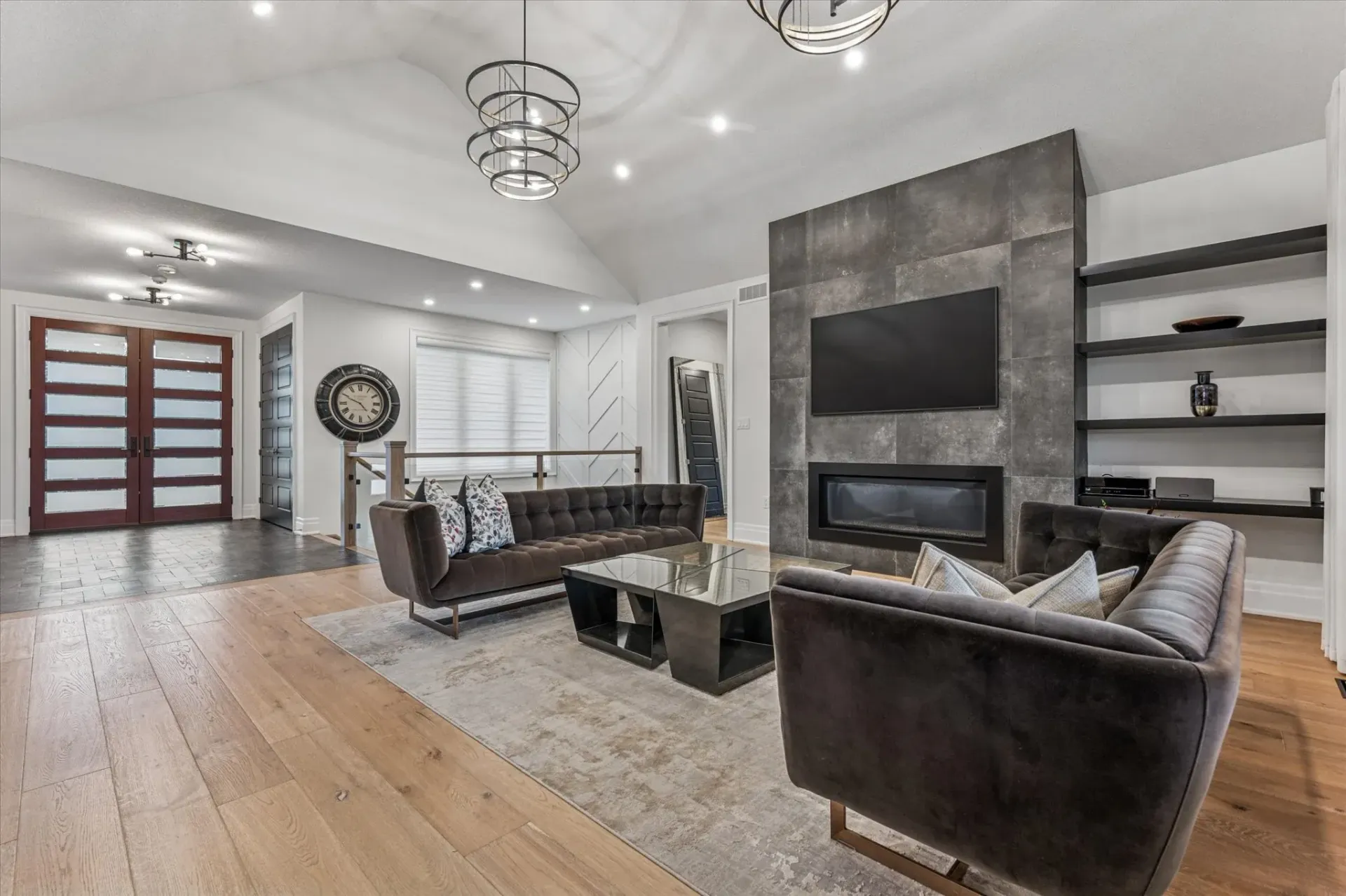 Vaulted ceilings, custom millwork, and heated polished concrete floors showcase the home's refined finishes and attention to detail.