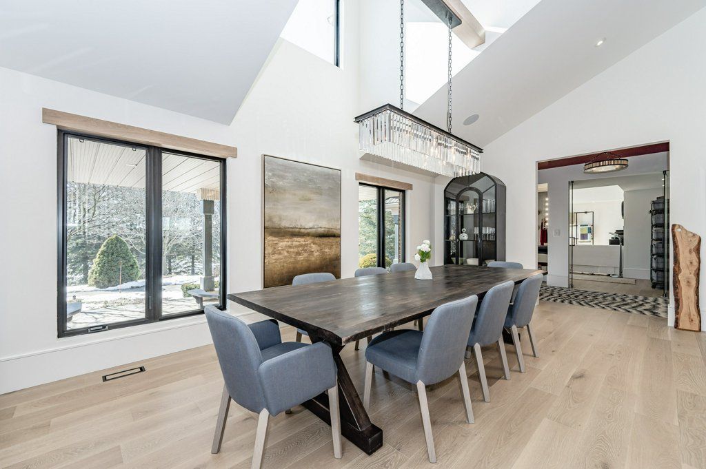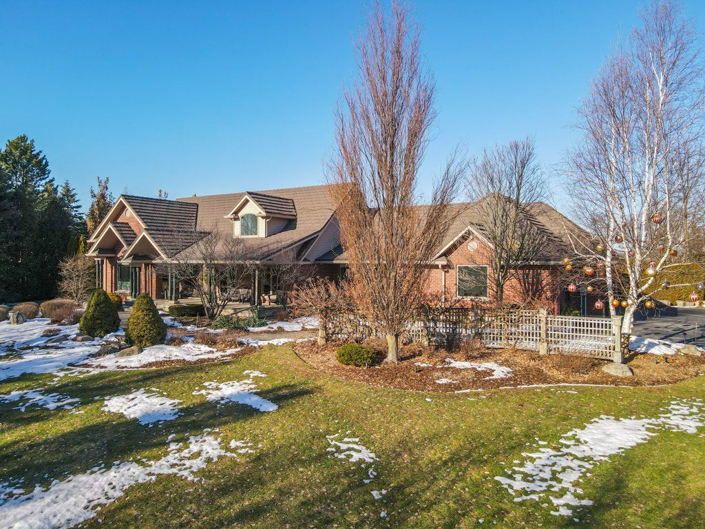 This is the luxury home that dreams are made of! Located in Fox Run Estates with modern design, cathedral ceilings and over 5000 sq ft of living space. Situated on almost 2 acres, with pool, deck and plenty of privacy. Includes an ultra-modern kitchen, stunning dining room, large den, living room with stone fireplace, and large primary bedroom with 5-piece en-suite bathroom. Lower level provides walk-out access to the pool, gym, modern family/recreation room, and additional bedrooms with large ground level windows providing spectacular views of the landscaped backyard. Separate basement entrance from the 3 car garage provide multiple living options. Incredible property is a must see to appreciate!